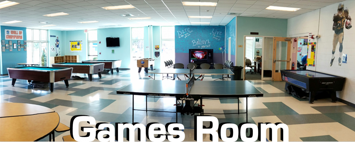 There is a TV viewing area and cafeteria tables for members who just want to hang out. There are various tournaments and activities taking place in our Games Room every day!